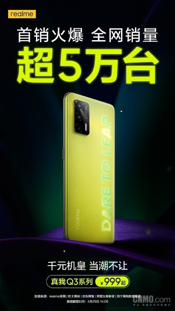 虽然在国内成立不久,但几年时间里,realme已经推出了多款高性价比手机。并且realme推出的每款手机颜值都很不错,即使是千元档手机,realme也带来了个性化的设计。realme日前发布的真我Q3系列就是如此,该系列手机定位“千元机皇”,起售价仅为999元,已于4月29日0点正式首销。现在,realme官方宣布真我Q3系列首销告捷:仅用时半天,全网销量就超过了5万台。