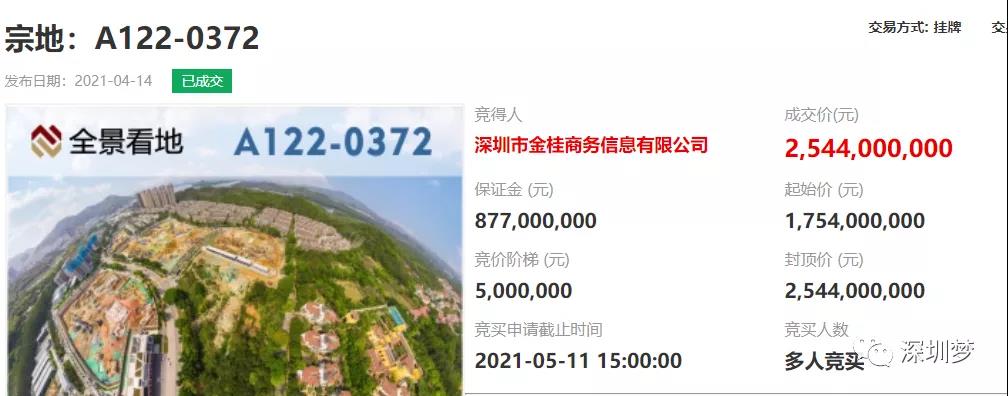 3、宝安西乡尖岗山宅地为金桂商务信息25.44亿竞得
