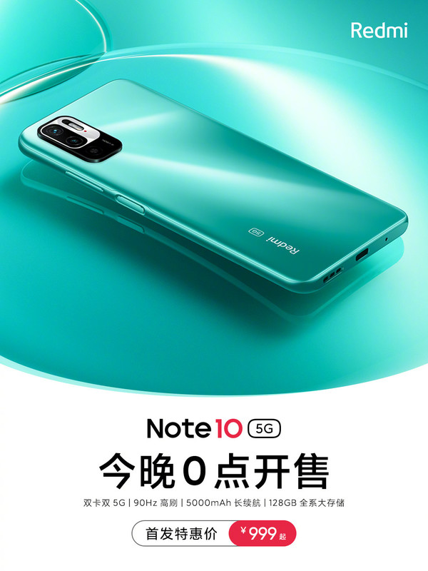 Redmi Note10系列开售! 内置5000mAh大电池 999起