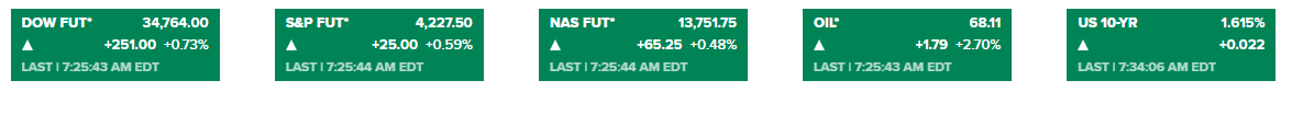 美股期货方面:截至伦敦股市上午10时左右,美国股指期货走势平淡。标准普尔500指数、道琼斯指数和纳斯达克指数等主要股指的期货预计今天开盘将上涨0.3%。截至发稿,美股期货走势如下图所示: