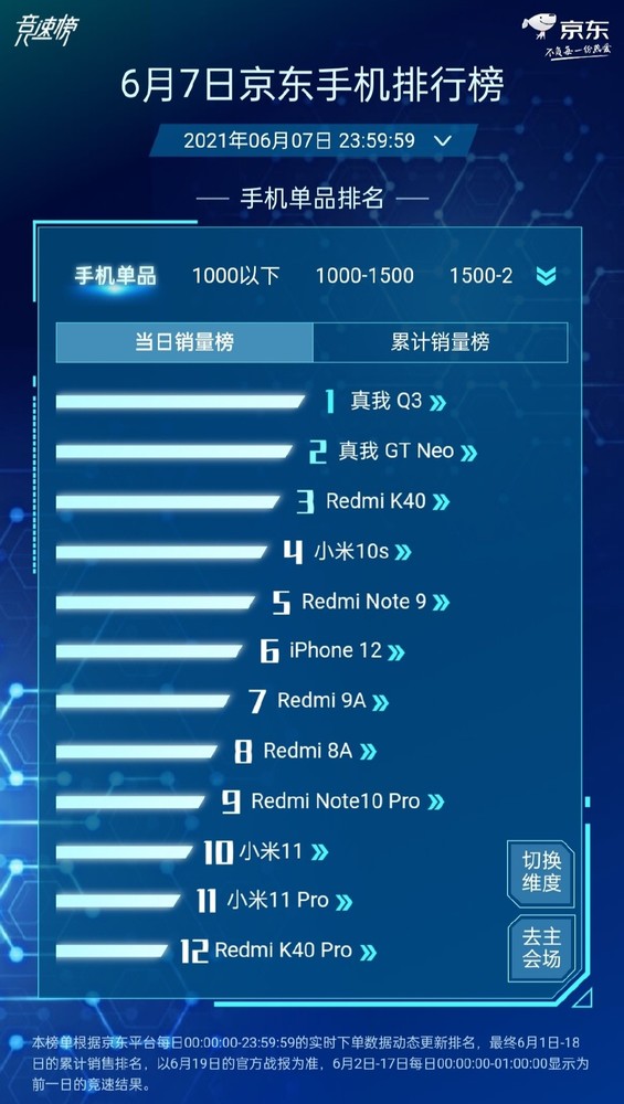 realme 618势不可挡 真我Q3获6月7日单品销量第一
