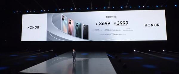售价上,荣耀50 8GB+128GB版售价2699元,8GB+256GB版售价2999元,12GB+256GB版售价3399元;荣耀50 Pro 8GB+256GB版售价3699元,12GB+256GB版售价3999元。两款新机将于今晚21:30开启预售,6月25日10:08正式开售。