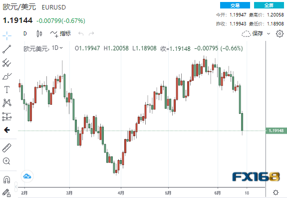 美市盘中,美元指数上涨近0.7%,突破92关口至90.01,为4月13日以来的最高水平,较日低拉升71点。欧元/美元下跌至两个月低点1.1890,日内大跌逾0.8%;英镑/美元失守1.39,日内跌幅扩大至0.6%。
