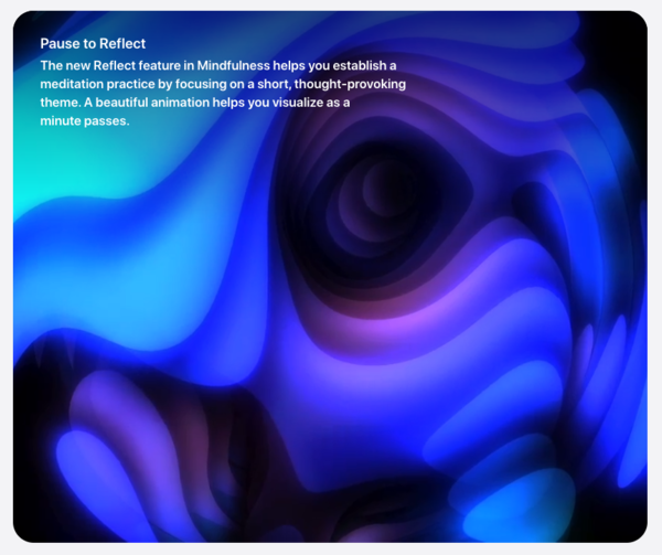 而在压力较大的时刻,不少人都会通过深呼吸的方式,帮助自己重获平静。watchOS 8中新增了“正念训练”应用,它包含了全新升级的深呼吸功能,我们可以跟随手表来练习深呼吸,给自己一个舒缓放松的时间。当然,我们也可以直接在手表中体验“冥想正念”,通过冥想沉思的方式,帮助我们聚焦积极的思想。