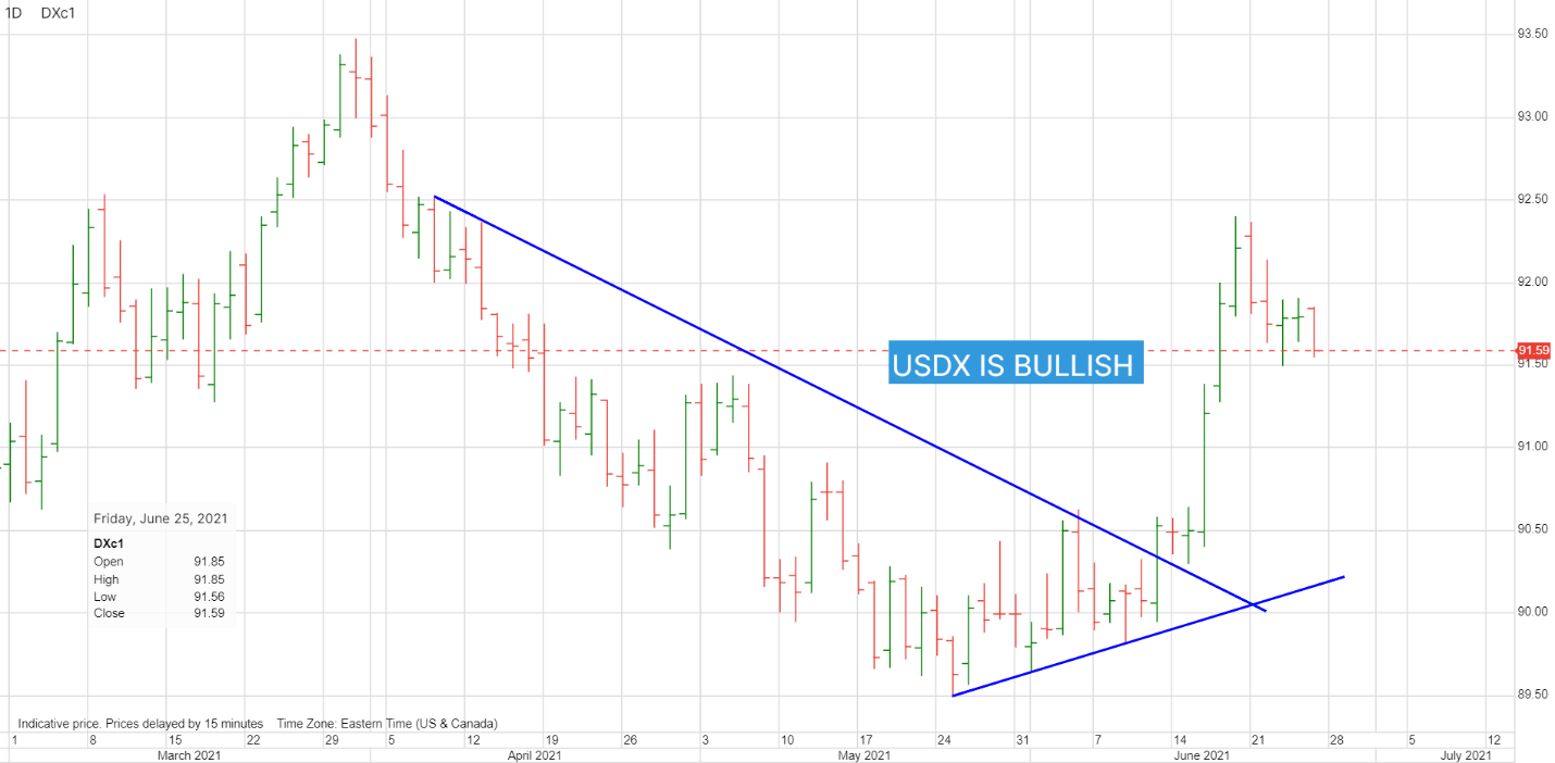 (美元指数日线图,来源:盛宝银行)