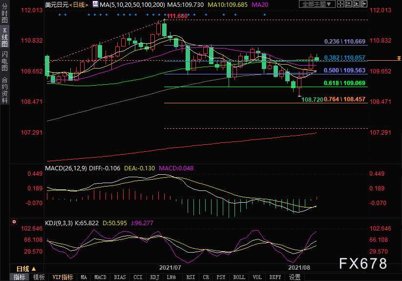 下方初步支撑关注20日均线109.90,进一步关注图中50%回撤位109.56以及61.8%回撤位109.67。