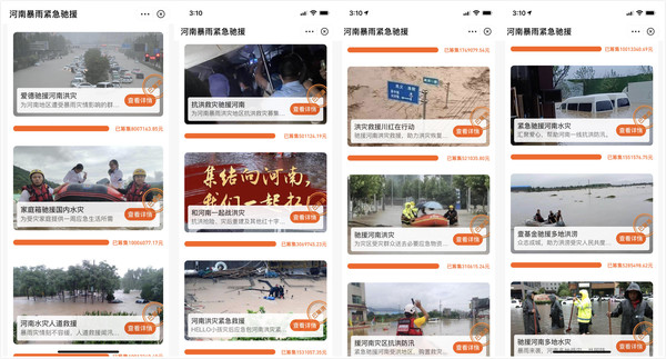 河南的暴雨牵动着每个人的心,全国各地的同胞们,都在通过自己的能力帮助河南受灾的同胞。天灾无情人有情,自7月21日起,蚂蚁集团及旗下的支付宝、蚂蚁保险和网商银行紧急协调资源,推出一系列举措和服务支持河南的救灾工作。21日凌晨1时许,支付宝“爱心捐赠”平台紧急上线了“驰援河南暴雨灾情”专区。根据支付宝“爱心捐赠”平台的数据显示,该筹款平台上线支付宝仅10小时,网友捐款总额就超过1000万元,24小时就超过7000万元。而截至7月22日13时12分,已有超过320万人(次)在“驰援河南暴雨灾情”专区,向中国扶贫基金会、河南省慈善总会、爱德基金会等多家公益机构的援助项目捐款,36小时筹得善款总额超1亿元,创造了“人均30多,捐出1亿元”的爱心奇迹,也刷新了支付宝平台上的爱心捐赠纪录。