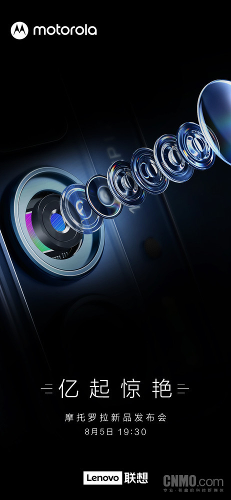 7月26日,摩托罗拉官宣了“亿起惊艳”新机发布会。发布会定档8月5日。从官方公布的海报来看,新机应该配备了亿级像素摄像头,相机表现是一大亮点。此外,因为发布会定档8月份,是旗舰机扎堆发布的日子,所以有猜测称,即将发布的新机将是旗舰定位。