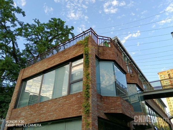 以上是一组荣耀X20拍摄的天空和建筑的照片,整体观感还算不错,尤其是第一张中,蓝天、绿树以及建筑的颜色层次分明,搭配远处高楼上散落下的夕阳,看起来很暖。另外,在最后一张样张中,虽然拍的是马路,但是远方的天空和云彩分外抢镜,一眼就能看出拍摄时刻天气有多热,层层的云彩也并不能挡住直射的阳光。