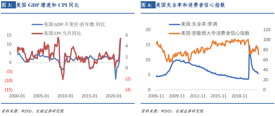 美国二季度GDP增速为12.17%,创近七十年以来的新高;8月11日公布的7月份CPI同比为5.4%,与上个月持平。这些数据显示美国经济目前仍处于过热状态。