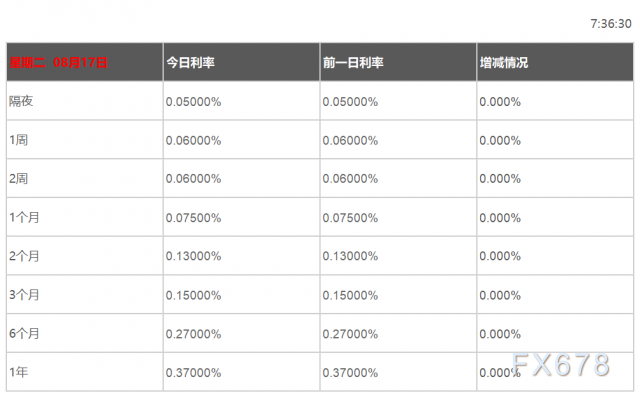 08月17日香港银行间同业拆借利率港币HIBOR